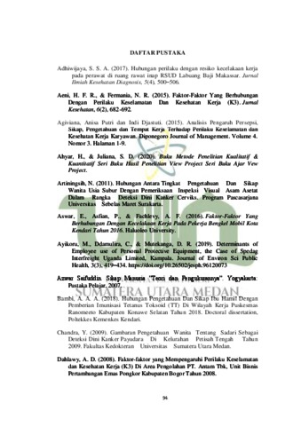 Ramadhani, Dian Fransiska and Aidha, Zuhrina and Zali, Muhammad (2023) Faktor Yang Berhubungan Dengan Perilaku K3 di PT. Perkebunan Nusantara IV Kebun/PKS Mayang. Skripsi thesis, Universitas Negeri Islam Sumatera Utara Medan.