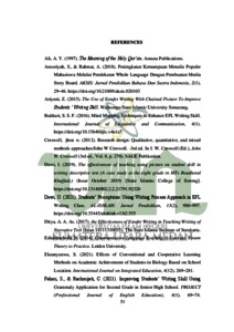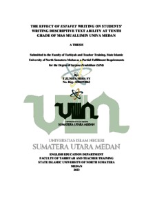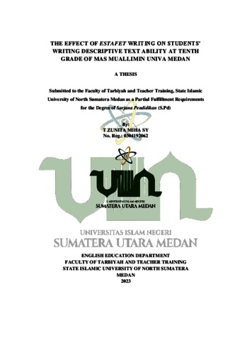 Sy, T Zunita Miha and Lubis, Yani and Daulay, Ernita and Hz, Benni Ichsanda Rahman (2023) The Effect of estafet Writing on Students' Writing Descriptive Text Ability at Tenth Grade of MAS Muallimin UNIVA Medan. Skripsi thesis, Universitas Negeri Islam Sumatera Utara Medan.