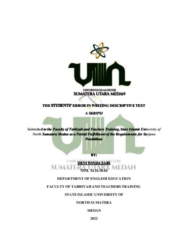 Sari, Devi Winda (2022) The Students’ Errors in Writing Descriptive Text. Skripsi thesis, Universitas Islam Negeri Sumatera Utara Medan.