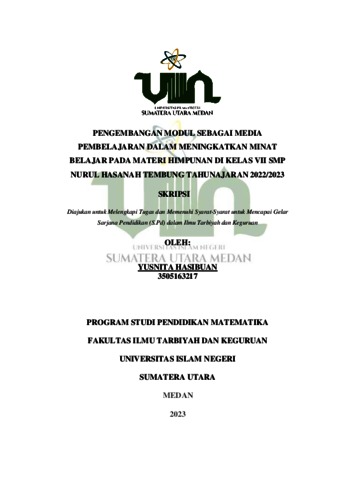 Hasibuan, Yusnita (2023) PENGEMBANGAN MODUL SEBAGAI MEDIA PEMBELAJARAN DALAM MENINGKATKAN MINAT BELAJAR PADA MATERI HIMPUNAN DI KELAS VII SMP NURUL HASANAH TEMBUNG TAHUNAJARAN 2022/2023. Skripsi thesis, Universitas Islam Negeri Sumatera Utara.