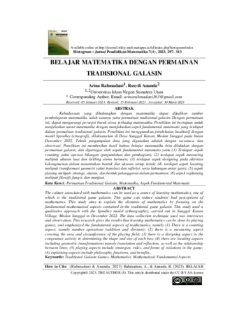 | Uncontrolled Keywords: | Permainan Tradisional Galasin, Matematika, Aspek Fundamental Matematika |