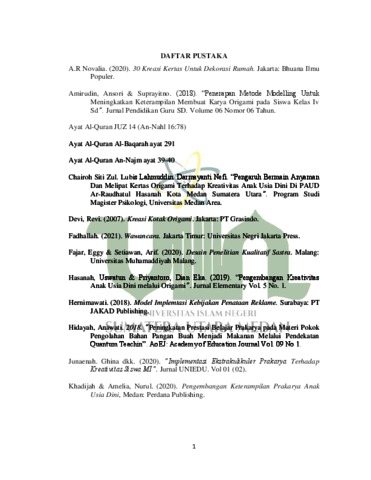 Putri, Hasyri Hadid Al-Mulk (2022) Peningkatan Kreativitas Anak Melalui Kegiatan Prakarya Kertas Origami untuk Anak Usia 5-6 Tahun di RA Al-Ikhlas Kisaran. Skripsi thesis, Universitas Islam Negeri Sumatera Utara Medan.