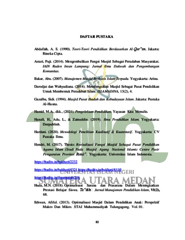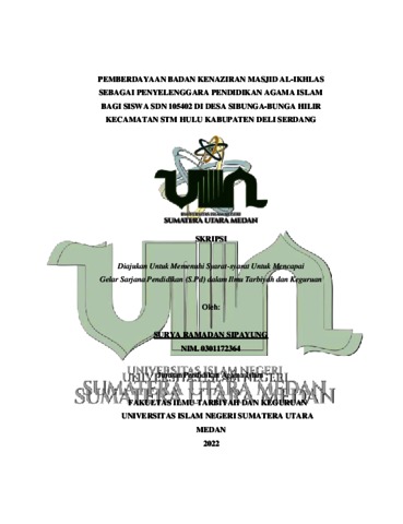 Sipayung, Surya Ramadan (2022) Pemberdayaan Badan Kenaziran Masjid Al-Ikhlas Sebagai Penyelenggara Pendidikan Agama Islam Bagi Siswa SDN 105402 di Desa Sibunga-Bunga Hilir Kecamatan STM Hulu Kabupaten Deli Serdang. Skripsi thesis, Universitas Islam Negeri Sumatera Utara Medan.