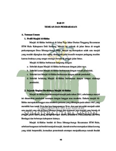 Penelitian ini bertujuan untuk mengetahui pemberdayaan Badan Kenaziran Masjid AlIkhlas sebagai sarana pembelajaran Pendidikan Agama Islam bagi Siswa SD Negeri 105402 di Desa Sibunga- Bunga Hilir Kecamatan STM Hulu Kabupaten Deli Serdang, sarana pembelajaran Pendidikan Agama Islam di Masjid Al-Ikhlas, beserta faktor penghambat pembelajaran PAI di Masjid Al-Ikhlas beserta solusi untuk menanggulangi faktor penghambar pembelajaran PAI di Masjid Al-Ikhlas. Penelitian ini menggunakan pendekatan kualitatif. Subjek didalam penelitian ini adalah BKM Al- Ikhlas, remaja masjid Al-Ikhlas, orang tua dari siswa dan siswi SD Negeri 105402 yang mengikuti kegiatan pembelajaran Pendidikan Agama Islam di Masjid Al-Ikhlas, serta siswa dan siswi SD Negeri 105402 yang mengikuti pembelajaran Pendidikan Agama Islam di Masjid Al-Ikhlas. Hasil dari penelitian ini menunjukkan bahwa Kegiatan keagamaan di Masjid Al-Ikhlas Desa Sibunga-bunga diawali oleh diskusi BKM Al-Ikhlas dengan pemuda setempat yang ingin mengadakan kegiatan pembelajaran agama tambahan bagi siswa dan siswi SD Negeri 105402 yang dianggap kekurangan jam pembelajaran. Faktor penghambat dan solusinya terbagi kepada beberapa aspek yaitu masih banyak orangtua yang kurang menyadari pentingnya belajar ilmu agama, sehingga tidak mengikutsertakan anaknya pada kegiatan ini, sarana dan prasarana pendukung pembelajaran pendidikan agama Islam di Masjid Al-Ikhlas masih perlu dibenahi dan ditambah, masih kurangnya buku-buku bacaan sebagai media pembelajaran tambahan bagi siswa yang mengikuti kegiatan pembelajaran pendidikan agama Islam di Masjid Al-Ikhlas, serta faktor yang berasal dari dalam diri siswa sendiri yang terkadang muncul rasa malas, bosan, ingin bermain-main.