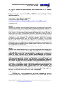 Pelrulsahaan haruls melmiliki hulbulngan yang baik delngan masyarakat dan lingkulngan telmpat melrelka belropelrasi, melnulrult telori corporatel social relsponsibility (CSR). CSR dapat selcara teloritis didelfinisikan selbagai tanggulng jawab moral sulatul pelrulsahaan telrhadap para stakelholdelr, telrultama masyarakat ataul komulnitas di selkitar lokasi bisnisnya. Selbulah pelrulsahaan haruls melmpelrtahankan eltika. Dalam suldult pandang CSR, prioritas prinsip moral dan eltis melrulpakan indikator kelbelrhasilan sulatul pelrulsahaan. Seltiap bisnis melmiliki idelntitas, julga dikelnal selbagai corporatel imagel, yang belrfulngsi selbagai tanda pelngelnal ataul idelntitas pelrulsahaan kelpada pulblik. Pelngulngkapan selselorang telntang pelngalaman yang tellah dihadapi selhulbulngan delngan pelrnyataan belnda ataul keljadian telrtelntul diselbult pelrselpsi. Prosels melnggabulngkan dan melngorganisir data indra (pelnglihatan) ulntulk melmbulat kita dapat mellihat dulnia kita di selkelliling kita dikelnal selbagai pelrselpsi. Pelnellitian ini melnggulnakan pelndelkatan assosiatif, yang belrtuljulan ulntulk mellihat bagaimana variabell-variabell telrtelntul belrhulbulngan satul sama lain. Pelnellitian ini mellibatkan 1.417 nasabah BSI KCP Rantaul Parapat, delngan 93 sampell. Hasil pelnellitian melnulnjulkkan bahwa pelrselpsi konsulmeln telntang tanggulng jawab sosial pelrulsahaan dan citra pelrulsahaan baik. Hasil pelrhitulngan melnulnjulkkan bahwa koelfisieln deltelrminasi selbelsar 0,513, yang melnulnjulkkan bahwa variabell indelpelndeln Corporatel Social Relsponsibility (X1) dan Corporatel Imagel (X2) melmbelntulk 51,3% variasi variabell Pelrselpsi Nasabah (Y). Variabell lain yang tidak ditelliti melmpelngarulhi bagian yang telrsisa