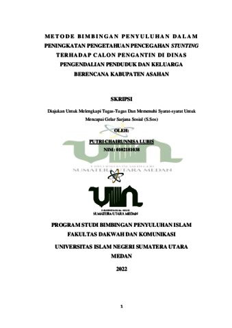 Lubis, Putri Chairunnisa (2022) Metode Bimbingan Penyuluhan dalam Peningkatan Pengetahuan Pencegahan Stunting terhadap Calon Pengantin di Dinas Pengendalian Penduduk dan Keluarga Berencana Kabupaten Asahan. Skripsi thesis, Universitas Islam Negeri Sumatera Utara Medan.