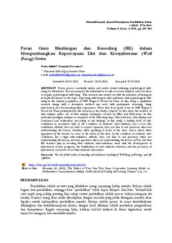 | Uncontrolled Keywords: | The role of BK teachers (Counseling and Guidance), Psychological Well-Being (well being), and self-confidence |