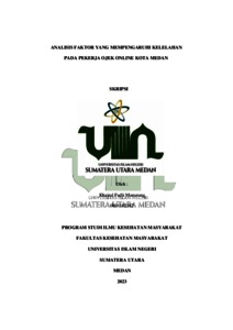 Manurung, Khairul Fadli (2023) ANALISIS FAKTOR YANG MEMPENGARUHI KELELAHAN PADA PEKERJA OJEK ONLINE KOTA MEDAN. Skripsi thesis, Universitas Islam Negeri Sumatera Utara.