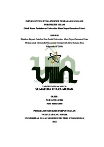 Lubis, Nur Afni (2022) IMPLEMENTASI ETIKA PROFESI PUSTAKAWAN DALAM PERSPEKTIF ISLAM. Skripsi thesis, Universitas Islam Negeri Sumatera Utara.