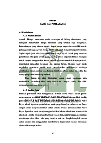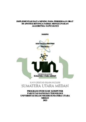 Pratiwi, Kiky Widya (2023) IMPLEMENTASI DATA MINING PADA PERSEDIAAN OBAT DI APOTEK RITONGA FARMA MENGGUNAKAN ALGORITMA NAÏVE BAYES. Skripsi thesis, Universitas Islam Negeri Sumatera Utara.