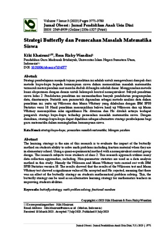 Khairuni, Kiki and Wandini, Rora Rizky Strategi Butterfly dan Pemecahan Masalah Matematika Siswa. : Jurnal Pendidikan Anak Usia Dini. (Submitted)
