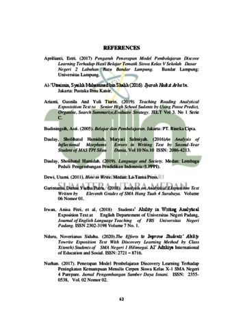 Wulandari, Nindia Putri (2022) THE IMPLEMENTATION OF DISCOVERY LEARNING METHOD TO THE STUDENTS’ ABILITY IN WRITING ANALYTICAL EXPOSITION TEXT AT ELEVENTH GRADE. Skripsi thesis, Universitas Islam Negeri Sumatera Utara.