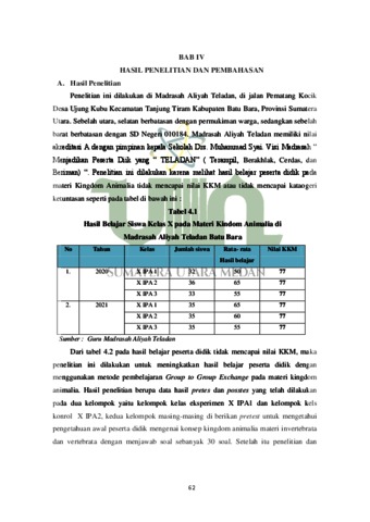 Rani, Rani (2022) PENGARUH METODE GROUP TO GROUP EXCHANGE TERHADAP HASIL BELAJAR PESERTA DIDIK PADA MATERI KINGDOM ANIMALIA DI MADRASAH ALIYAH TELADAN BATU BARA. Skripsi thesis, Universitas Islam Negeri Sumatera Utara.