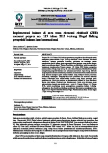 Implementasi hukum di area zona ekonomi eksklusif (ZEE) menurut perpres no. 115 tahun 2015 tentang illegal fishing perspektif hukum laut internasional