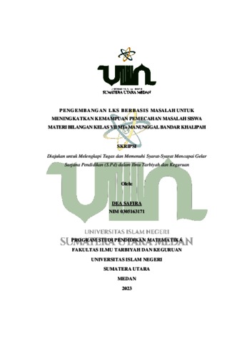 Safira, Dea PENGEMBANGAN LKS BERBASIS MASALAH UNTUK MENINGKATKAN KEMAMPUAN PEMECAHAN MASALAH SISWA MATERI BILANGAN KELAS VII MTs MANUNGGAL BANDAR KHALIPAH. Skripsi thesis, Universitas Islam Negeri Sumatera Utara.