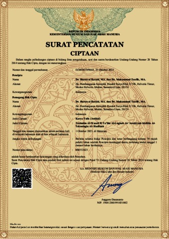 Al Rasyid, Harun and Taufik, Muhammad (2023) Surat Pencatatan Ciptaan Tashmîm Al-Wasail Fi Ta’lîm Al-Lughoh Al-’Arobiyyah Khilâla Al-Teknologia Al- Hadîtsah. Kementerian Hukum dan HAM, Mataram.