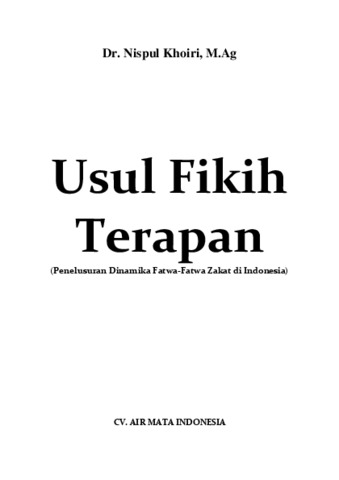 Khoiri, Nispul (2023) Usul Fikih Terapan (Penelusuran Dinamika Fatwa-Fatwa Zakat di Indonesia). CV. Air Mata Indonesia. ISBN 978-623-5305-60-8