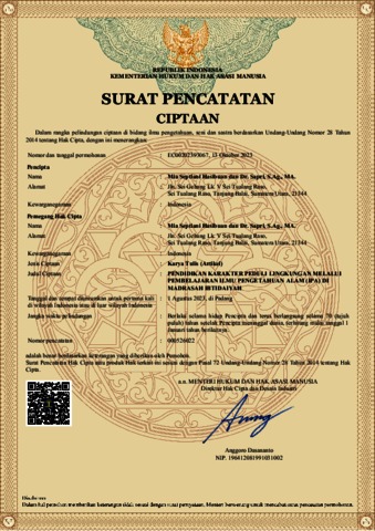 Hasibuan, Mia Septiani and Sapri, Sapri (2023) HAKI Pendidikan Karakter Peduli Lingkungan Melalui Pembelajaran Ilmu Pengetahuan Alam (IPA) Di Madrasah Ibtidaiyah. Universitas Islam Negeri Sumatera Utara.