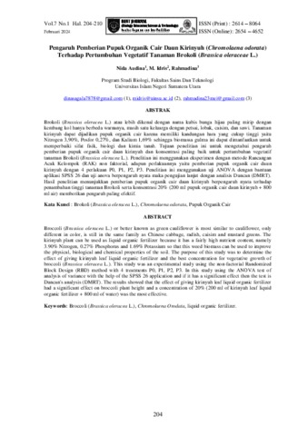 Uncontrolled Keywords: Brokoli (Brassica oleracea L.), Chromolaena odorata, Pupuk Organik Cair