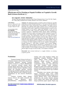 | Uncontrolled Keywords: | Basil (Ocimum Basilicum L..), Organic Fertilizer, Eco Farming, Vegetative Growth |