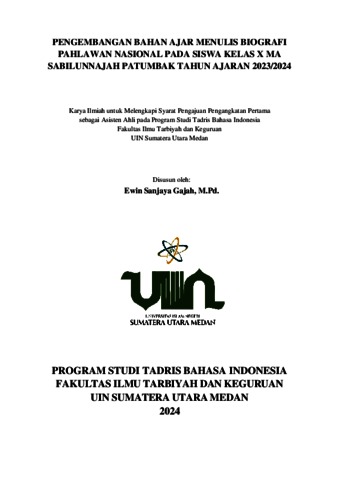 Gajah, Ewin Sanjaya (2024) Pengembangan Bahan Ajar Menulis Biografi Pahlawan Nasional pada Siswa Kelas X MA Sabilunnajah Patumbak Tahun Ajaran 2023/2024. Universitas Islam Negeri Sumatera Utara Medan, Medan.