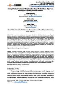This research aims to determine the strategies of students in the Islamic education counseling and guidance department in completing course assignments. The method in this research uses qualitative methods. Qualitative methods are research approaches that aim to understand human phenomena in an in-depth and descriptive way, this involves collecting data and figures, such as text, images, sounds, or videos, and analyzing them to identify patterns, themes, and meaning. The results of this research found that students of the Islamic Counseling and Guidance Study Program at the Faculty of Tarbiyah and Teacher Training have their own ways and strategies for completing course assignments, even though overall they have not been able to complete assignments on time or often postpone them. This research is expected to have a positive impact on students majoring in Guidance. Islamic education counseling in completing lecture assignments and developing their knowledge regarding strategies for completing lecture assignments.