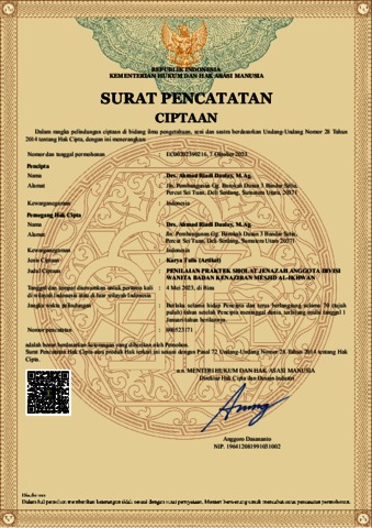 Daulay, Ahmad Riadi (2023) Surat Pencatatan Ciptaan Penilaian Praktek Sholat Jenazah Anggota Divisi Wanita Badan Kenaziran Mesjid Al-Ikhwan. Kementerian Hukum dan HAM, Riau.