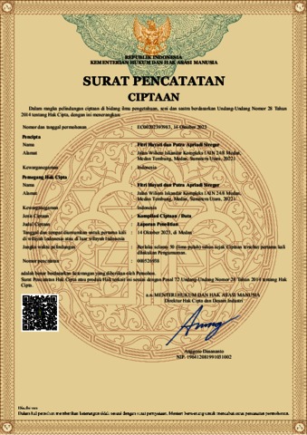 Hayati, Fitri and Siregar, Putra Apriadi (2023) Surat Pencatatan Ciptaan Kompilasi Ciptaan / Data. Kementerian Hukum dan HAM, Medan.