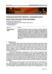 The TikTok app is filled with material, and in addition to providing a platform for amusement, it also features a number of content providers that offer TikTok users helpful educational resources. Among them is Vina Muliana, an 89 million-follower content producer who gives TikTok fans a lot of helpful advice regarding the world of careers.Through in-depth interviews with a number of people who have utilized Vina Muliana's TikTok content in the field of education, this study aims to shed light on the function of TikTok content for job searchers. According to the study's findings and conclusions, Vina Muliana's professional education material has a beneficial influence on adolescents who learn what alternatives they can use to support their future careers.