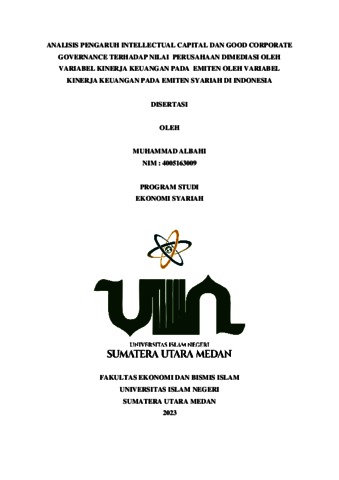 Albahi, Muhammad (2023) Analisis Intellect Capital dan Good Corporative Governance terhadap Nilai Perusahaan Dimediasi oleh Variabel Kinerja Keuangan pada Emiten Syariah di Indonesia. Masters thesis, Universitas Islam Negeri Sumatera Utara Medan.