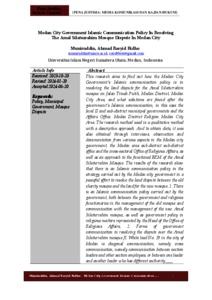This research aims to find out how the Medan City Government's Islamic communication policy is in resolving the land dispute for the Amal Silaturrahim mosque on Jalan Timah Putih, Medan District, Medan City Area, and what solutions are found after the government's Islamic communication, in this case the level II and sub-district municipal governments and the Affairs Office. Medan District Religion Medan City Area. The research method used is a qualitative method with a descriptive approach. And to obtain data, it was also obtained through interviews, observation and documentation from various aspects in the Medan city government, the Medan area sub-district sub-district office and the cross-sectoral Office of Religious Affairs, as well as an approach to the functional BKM of the Amal Silaturrahim Mosque. The results of the research show that there is an Islamic communication policy in the strategy carried out by the Medan city government in a peaceful effort to resolve the land dispute between the old charity mosque and the land for the new mosque. 1. There is an Islamic communication policy carried out by the government, both between the government and religious functionaries in the management of the old mosque and communication with the management of the new Amal Silaturrahim mosque, as well as government policy in religious matters represented by the Head of the Office of Religious Affairs, 2. Forms of government communication in resolving the dispute over the Amal Silaturrahim mosque Jl. White lead No. 29 in the city of Medan is diagonal communication, namely cross communication, namely communication between section leaders and other section employees, or between one leader and another leader who has different authority