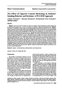 Nasution, Juliana and Batubara, Maryam and Nasution, Muhammad Idris and Ahsan, Abdillah (2024) The Effect of Cigarette Content Marketing on Students’ Smoking Behavior and Decisions: A PLS-SEM Approach. Asian Pacific Journal of Cancer Prevention, 25.