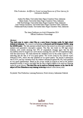 Uncontrolled Keywords: Film Production, Learning Resources, News Literacy, Indonesian Students