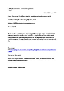 Bukti Korespondensi Artikel: Newspaper Digital Transformation in Medan : Analysis of SWOT and Existence