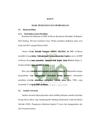 FAKTOR YANG BERHUBUNGAN DENGAN PELAKSANAAN USAHA KESEHATAN SEKOLAH (UKS) DI SMP AL-HUSNA KECAMATAN PATUMBAK