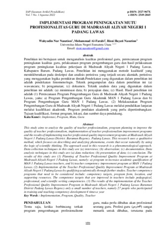 Nasution, Wahyudin Nur and Farabi, Mohammad Al and Nasution, Risni Hayati (2022) Implementasi Program Peningkatan Mutu Profesionalitas Guru di Madrasah Aliyah Negeri 1 Padang Lawas. SAP (Susunan Artikel Pendidikan), 7 (1). ISSN p-ISSN: 2527-967X e-ISSN: 2549-2845