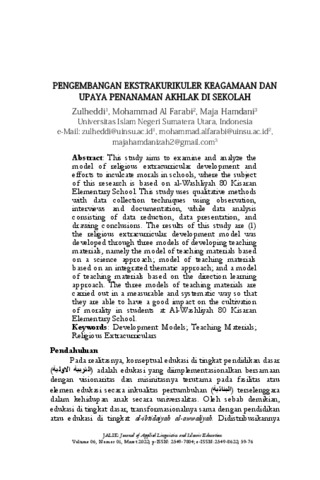 Zulheddi, Zulheddi and Farabi, Mohammad Al and Hamdani, Maja (2022) Pengembangan Ekstrakurikuler Keagamaan dan Upaya Penanaman Akhlak di Sekolah. JALIE: Journal of Applied Linguistics and Islamic Education, 6 (1). pp. 59-76. ISSN p-ISSN: 2549-7804; e-ISSN: 2549-8622