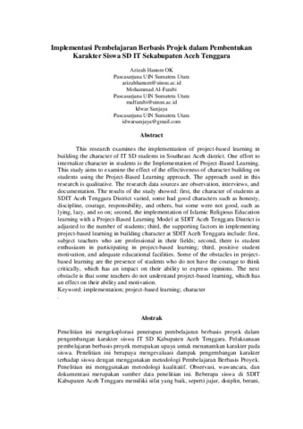 This research examines the implementation of project-based learning in building the character of IT SD students in Southeast Aceh district. One effort to internalize character in students is the Implementation of Project-Based Learning. This study aims to examine the effect of the effectiveness of character building on students using the Project-Based Learning approach. The approach used in this research is qualitative. The research data sources are observation, interviews, and documentation. The results of the study showed: first, the character of students at SDIT Aceh Tenggara District varied, some had good characters such as honesty, discipline, courage, responsibility, and others, but some were not good, such as lying, lazy, and so on; second, the implementation of Islamic Religious Education learning with a Project-Based Learning Model at SDIT Aceh Tenggara District is adjusted to the number of students; third, the supporting factors in implementing project-based learning in building character at SDIT Aceh Tenggara include: first, subject teachers who are professional in their fields; second, there is student enthusiasm in participating in project-based learning; third, positive student motivation, and adequate educational facilities. Some of the obstacles in projectbased learning are the presence of students who do not have the courage to think critically, which has an impact on their ability to express opinions. The next obstacle is that some teachers do not understand project-based learning, which has an effect on their ability and motivation.