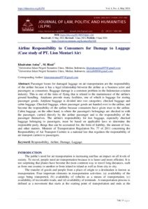 Anisa, Khairatun and Rizal, M. (2024) Airline Responsibility to Consumers for Damage to Luggage (Case study of PT. Lion Mentari Air). Journal of Law, Politic and Humanities (JLPH), 4 (4). pp. 746-751. ISSN 2962-2816