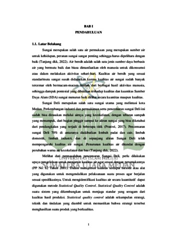 PENGENDALIAN KUALITAS AIR SUNGAI DELI KOTA MEDAN MENGGUNAKAN METODE STATISTICAL QUALITY CONTROL