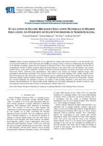 Uncontrolled Keywords: Islamic Religious Education; Evaluation of Learning Materials; North Sumatra State University