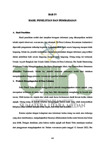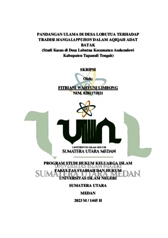Limbong, Fitriani Wahyuni (2023) PANDANGAN ULAMA DI DESA LOBUTUA TERHADAP TRADISI MANGALAPPUHON DALAM AQIQAH ADAT BATAK (Studi Kasus di Desa Lobutua Kecamatan Andamdewi Kabupaten Tapanuli Tengah). Skripsi thesis, Universitas Islam Negeri Sumatera Utara.