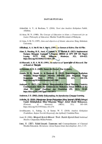 Lubis, Rahmat Rifai (2024) IMPLEMENTASI KEBIJAKAN MERDEKA BELAJAR-KAMPUS MERDEKA PADA FAKULTAS AGAMA ISLAM: STUDI MULTISITUS DI UMSU DAN UISU. Masters thesis, Universitas Islam Negeri Sumatera Utara Medan.