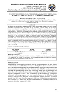 Putri, Hikmathine Osella and Arrazy, Syafran and Wahyudi, Wahyudi (2024) SUBSTITUTION OF RED AMARANTH FLOUR (AMARANTHUS TRICOLOR L.) IN MANUFACTURE WET NOODLES AS FOODS HIGH IN IRON (FE). Indonesian Journal of Global Health Research, 6 (3). pp. 1663-1674. ISSN e-ISSN 2715-1972; p-ISSN 2714-9749
