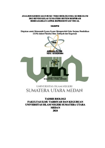 Putri, Adelia (2024) ANALISIS KESESUAIAN BUKU TEKS BIOLOGI SMA KURIKULUM 2013 REVISI KELAS XI MATERI SISTEM RESPIRASI BERDASARKAN ASPEK REPRESENTASI VISUAL. Skripsi thesis, Universitas Islam Negeri Sumatera Utara Medan.