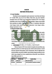 The research that has been carried out is entitled "Analysis of the Suitability of Biology Textbooks for High School Curriculum 2013 Revision for Class The books used by teachers prioritize the completeness of the material, while the books used by students display various aspects of visual representation. The visual representation aspect is an aspect in biology textbooks which contains images including photos, modeled images, schemes/processes, descriptive images, tables and concept maps. This research aims to measure which of the 3 books used is the best percentage of visual representation aspects. This research uses a quantitative content analysis method with content analysis and is validated by 2 validators, namely an expert lecturer and a biology teacher so that the results of the researcher's analysis are not subjective. Content analysis is research that takes the form of an in-depth discussion of written or printed content or information in mass media. The schools used as research objects are high school schools in Medan, namely Mamiai Al-Ittihadiyah High School, Al-Hidayah High School and Budi Agung High School. The data collection technique used was conducting observations on teachers and students regarding the importance of visual representation aspects in textbooks and document analysis in the three textbooks they use at school. The data analysis technique used is to collect all aspects of visual representation in textbooks which are then categorized into each aspect of visual representation in a table list which is then marked with a tick. The results of the research that has been carried out show that of the three books analyzed, books from the Triseries publisher have the highest percentage when compared to books from Grafindo and Baimu publishers. Presentation of visual representation aspects in the respiratory system material is very much needed to be a supporting factor in the explanation of the respiratory system material in order to achieve learning objectives. The results of this research are also useful for prospective educators to pay more attention to the textbooks that will be used for teaching in the classroom to reduce misconceptions in delivering the material.