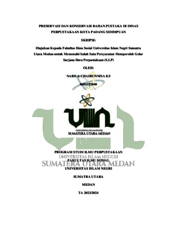 Chairunnisa KS, Nabila (2023) PRESERVASI DAN KONSERVASI BAHAN PUSTAKA DI DINAS PERPUSTAKAAN KOTA PADANG SIDIMPUAN. Skripsi thesis, Universitas Islam Negeri Sumatera Utara Medan.