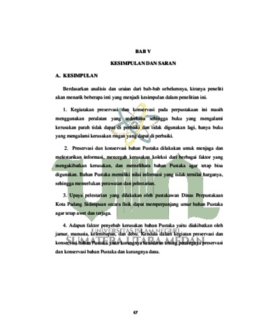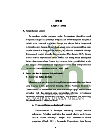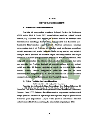| Uncontrolled Keywords: | Preservasi dan Konservasi Bahan Pustaka Di Dinas Perpustakaan Kota Padang Sidimpuan |