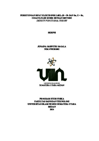 SAHPUTRI SAGALA, JUNAINA (2024) Perhitungan Sifat Elektronik LIBX3 (B = PB DAN SN; X = BR, CL Dan I) Fase Kubik Dengan Metode Density Functional Theory. Skripsi thesis, UIN Surmatra Utara Medan.