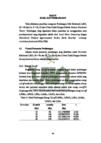 Perhitungan Sifat Elektronik LIBX3 (B = PB DAN SN; X = BR, CL Dan I) Fase Kubik Dengan Metode Density Functional Theory